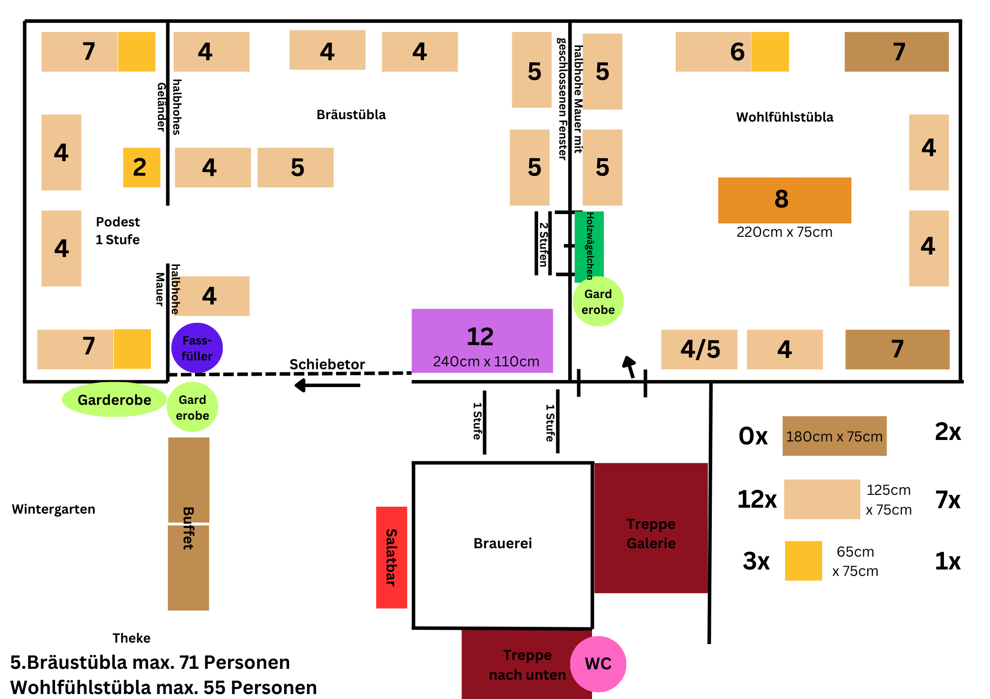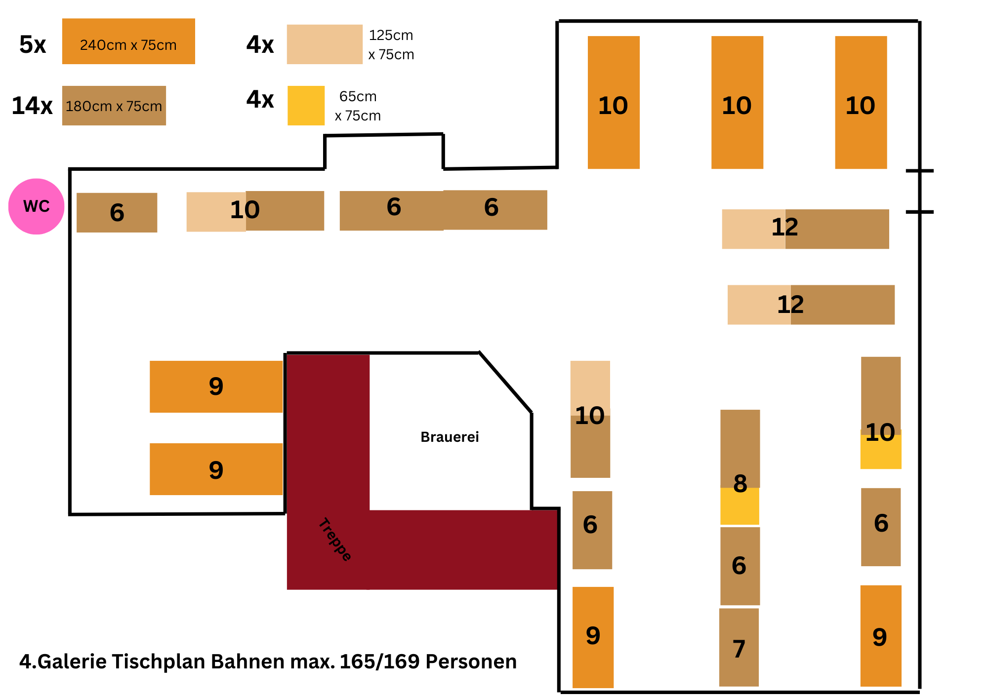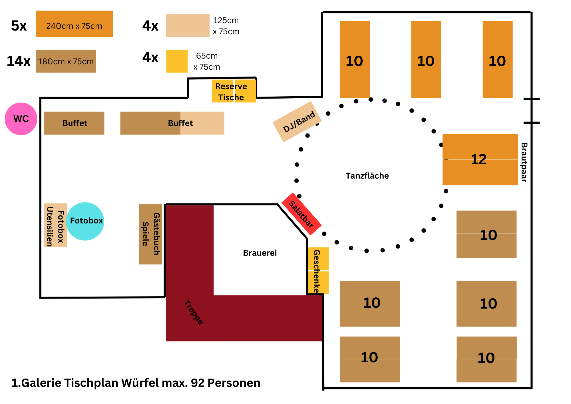 Hier ein paar Vorschläge, wie wir bei Eurer Feier die Tische optimal nach Personenzahl und Bedarf stellen können.